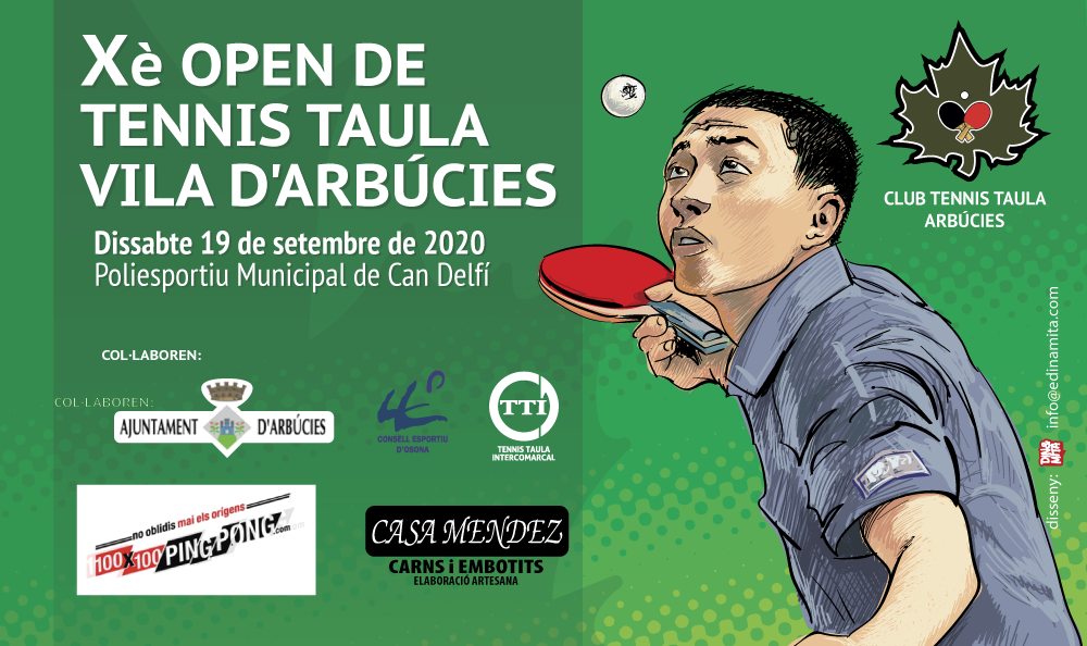 Xè Open de Tennis Taula Vila d’Arbúcies Dissabte 19 de setembre. Tot i la situació actual d’incertesa per la Covid-19