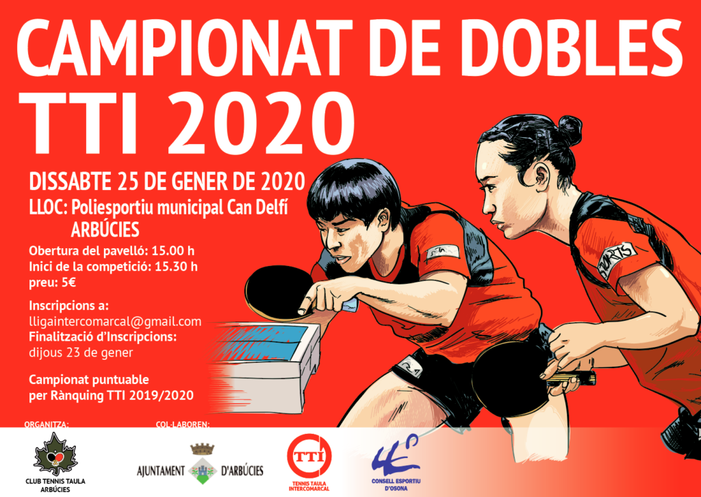 El proper dissabte 25 de gener a Arbucies, nova convocatoria del torneig de dobles del TTI. Com sempre, podeu anar
