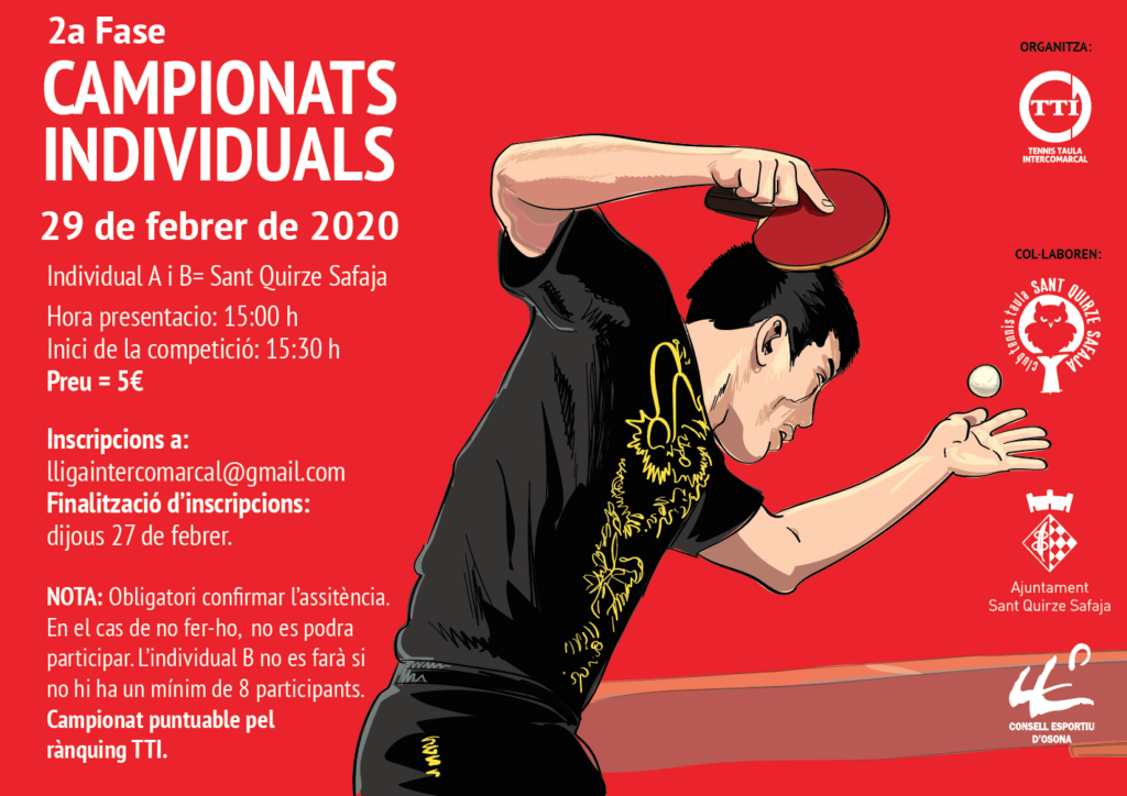 Recordem que aquesta temporada poden participar als individuals tots els jugadors inscrits al TTI, independentment de que hagin disputat partits