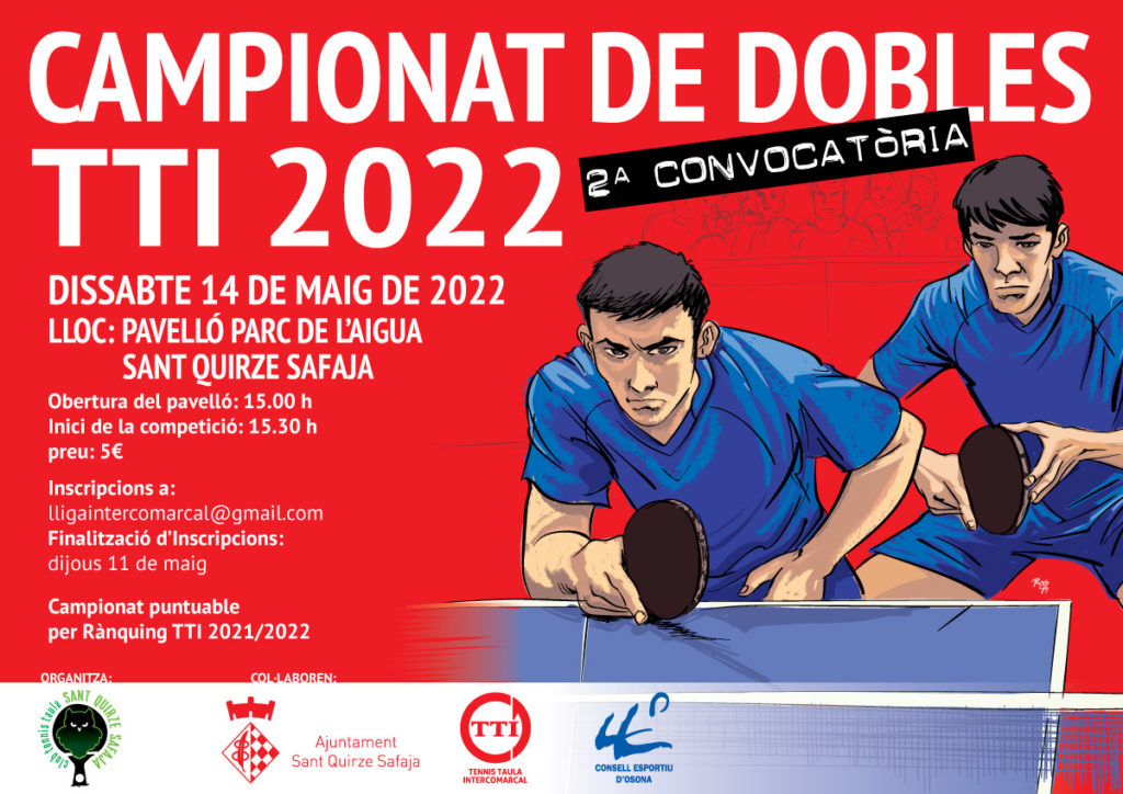 Obrim nova convocatòria del Campionat de Dobles TTI ! Dissabte 25 de gener a la tarda tindrà lloc, a Sant